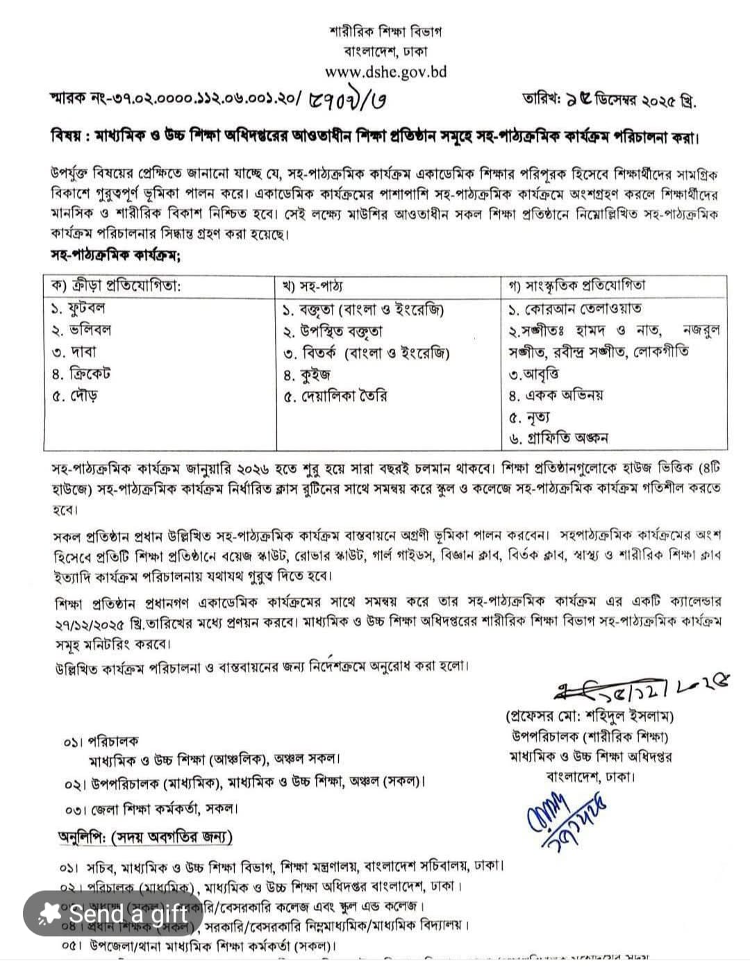শিক্ষা প্রতিষ্ঠানসমুহে সহ-পাঠ্যক্রমিক কার্যক্রম ...