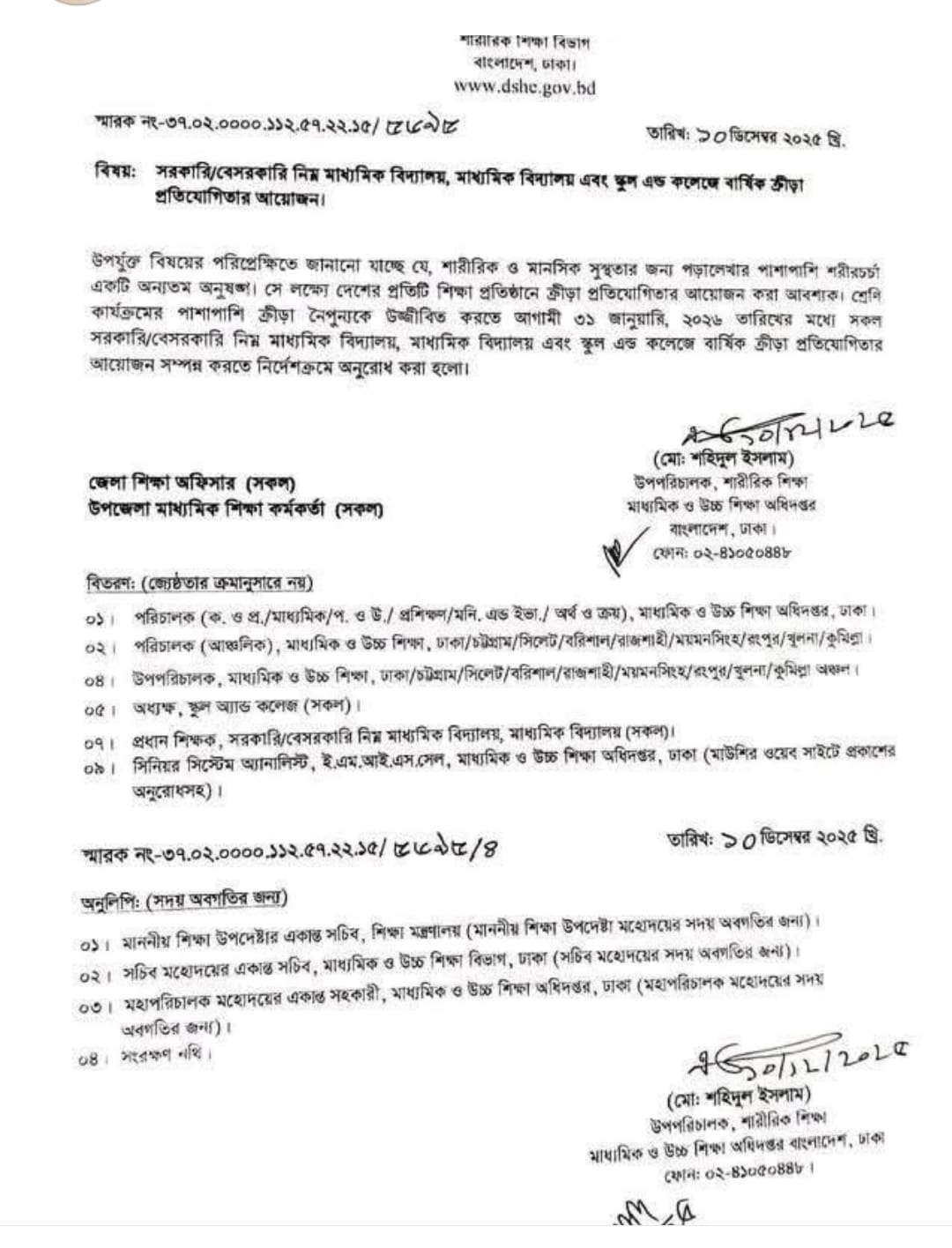 ৫৪তম শীতকালীন জাতীয় ক্রীড়া প্রতিযোগিতা ২০২৬ এর সময়সূচী ।